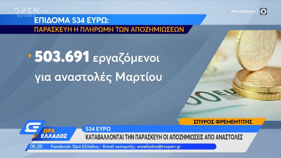 Epidoma 534 Eyrw Anastoles Aprilioy Plhrwmh Shmera Ti Wra Mpainei from www.ieidiseis.gr Στηρίζουμε την οικογένεια στην πράξη. Πληρώνεται αύριο, τρίτη 11 μαΐου, το επίδομα 534 ευρώ για τις αναστολές απριλίου, ενώ το υπόλοιπο του δώρου πάσχα αναμένεται να καταβληθεί έως τις 31 μαΐου. Αρχίζουν οι αιτήσεις για το επίδομα 534 ευρώ: .τους από τις προσωπικές και επαγγελματικές σταθερές τηλεφωνικές γραμμές τους και από τα κινητά τηλέφωνά τους «για την περίοδο από τις 15 απριλίου 2017 έως τις 31 ιουλίου 2017», αναφέρει. 534 ευρώ επίδομα εργαζόμενοι υπουργείο εργασίας. Από δευτέρα (10/5) η καταβολή της παράτασης των επιδομάτων ανεργίας που έληξαν τον απρίλιο. Πότε θα καταβληθεί η παράταση των επιδομάτων που έληξαν μετά τις 10/4. Αύριο, τρίτη, 11 μαΐου 2021, θα καταβληθούν από το υπουργείο εργασίας οι αποζημιώσεις για τις αναστολές συμβάσεων εργασίας του απριλίου, που αφορούν 472.899 δικαιούχους.
